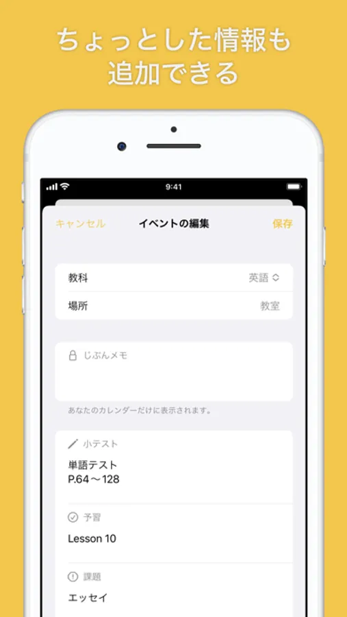 ・「じぶんメモ」機能であなたのカレンダーだけに表示されるメモを残すことができます。