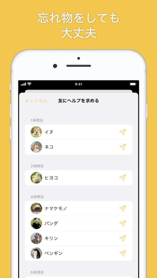 ・忘れ物をしたときは、登録している「友」にヘルプを求めることができます。