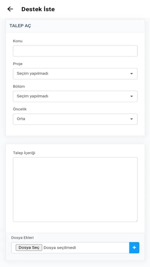 Müşteri hesabınız ile "Destek İste" butonundan destek taleplerinizi oluşturabilirsiniz.