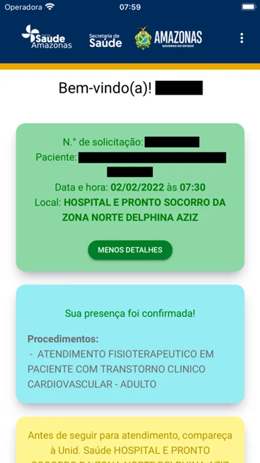 Com o Aplicativo Saúde Amazonas, o cidadão pode consultar a data de sua consulta, exame ou outro procedimento médico solicitado a partir do sistema de regulação SISREG.