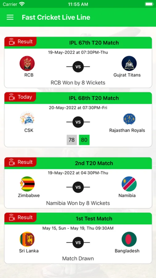 Full Description : Best Live Cricket Score app for Cricket fans and live match followers. Get live Cricket match score updates on your mobile for all International matches, T20 leagues. This app provides fast score updates and you will be able to check ball by ball runs and other live score stats.