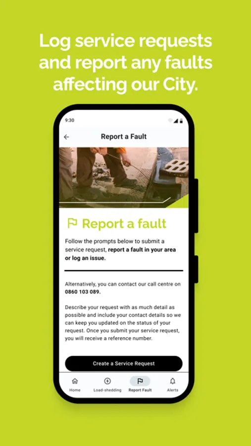 Log your service requests directly through the app to report faults such as potholes, faulty streetlights and water leaks affecting your area.