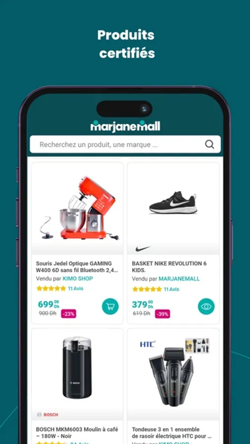 Grâce à sa marketplace, l’application marjanemall va plus loin et vous propose un large choix d’univers : téléphones et objets connectés, TV, son et photos, informatique et gaming, électroménager, maison, cuisine et décoration, beauté et santé, vêtements, chaussures & accessoires, bébé et jouets, sport, auto-moto, bricolage, jardin animalerie, librairie…