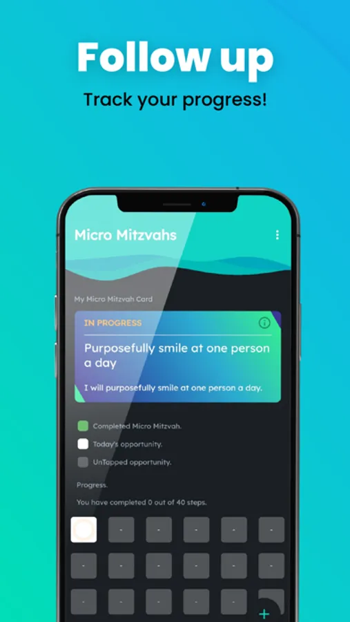 The MicroMitzvah app invites you to join a 40-day challenge! Choose one small action, and keep it going consistently.