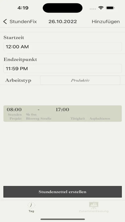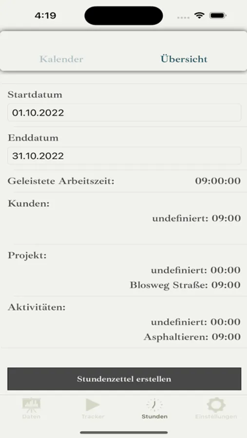 Erstellen Sie ihren Stundenzettel und bekommen Sie eine Übersicht zu Ihren Tätigkeiten.