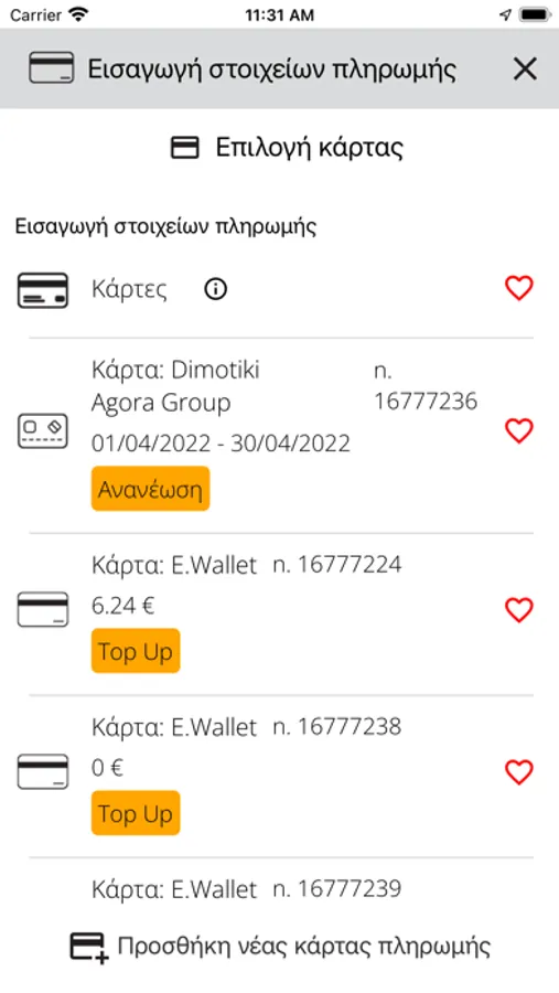 • Αγορά μηνιαίας κάρτας στάθμευσης,