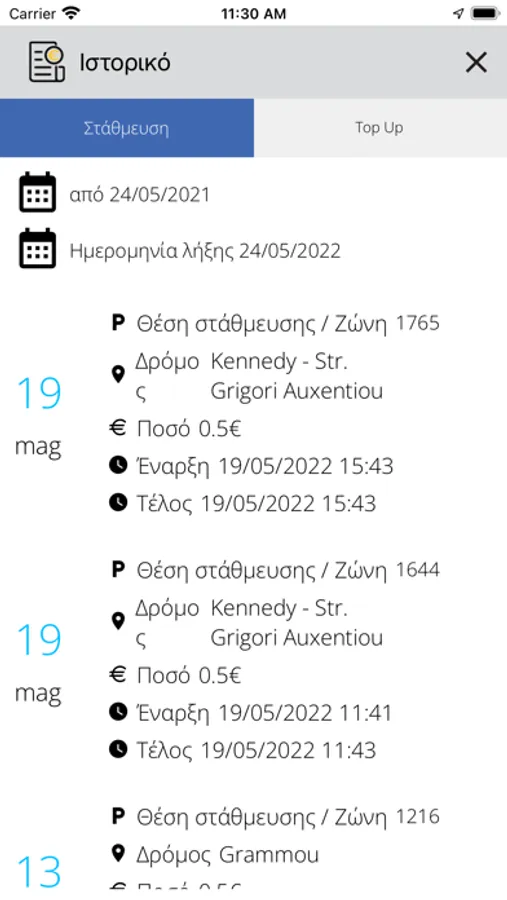 • Πρόσβαση στο ιστορικό στάθμευσης και αντίστοιχων χρεώσεων .