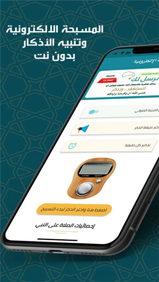 - التنبيه بالصلاة على النبي محمد مع المسبحة الإلكترونية.