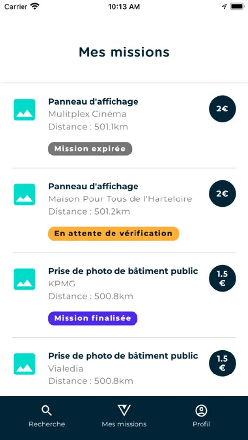 Indépendant, vous choisirez de réaliser les missions que vous voudrez. Sur vos trajets du quotidien, domicile-travail, sur vos trajets pour aller profiter de vos loisirs, regardez si une mission est à proximité de votre itinéraire et réalisez la.