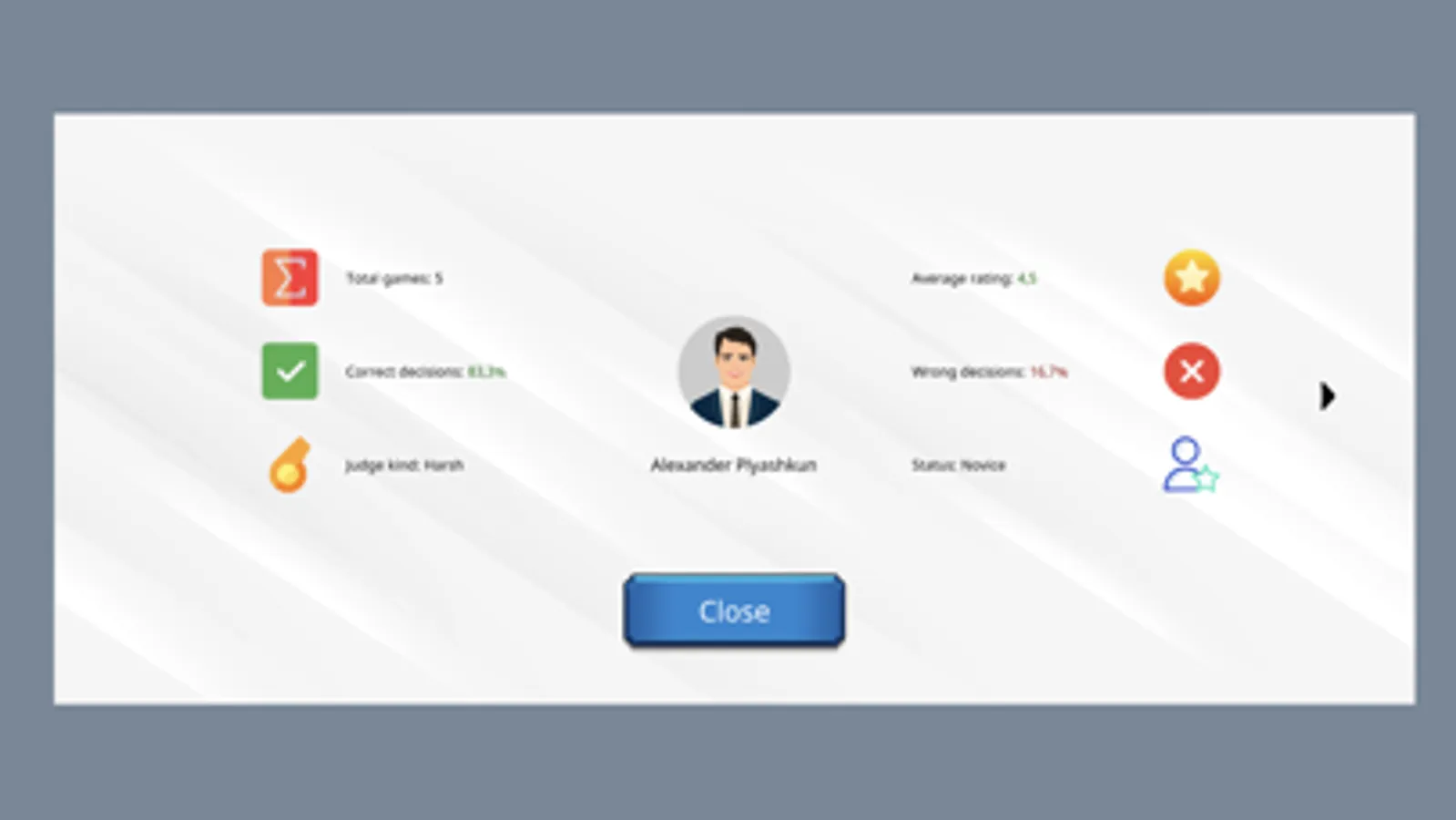 Create your own character and achieve desired goals! Read news after each game, take various awards and improve your personal statistics!