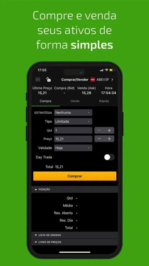 - Acompanhe as solicitações de compra e venda de ativos da bolsa;