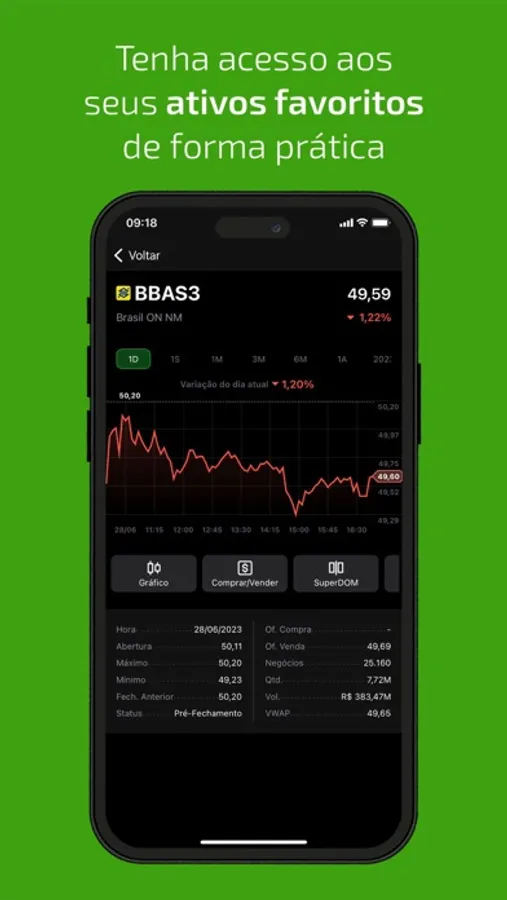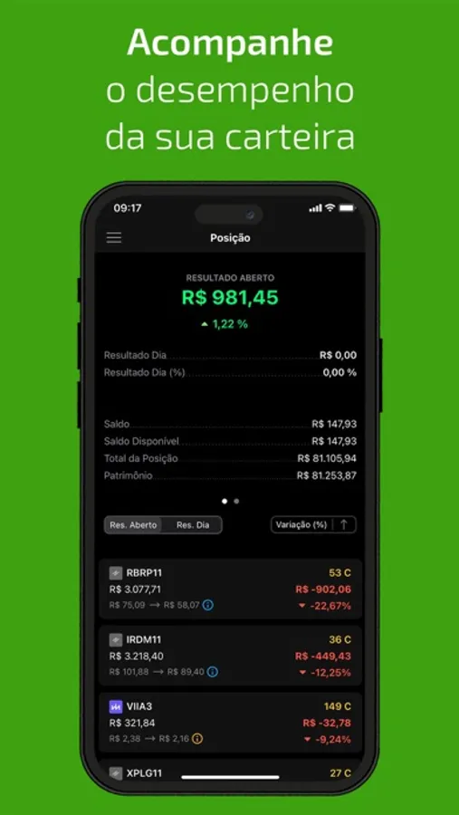 - Consulte o patrimônio, o desempenho da carteira e os detalhes dos seus investimentos;