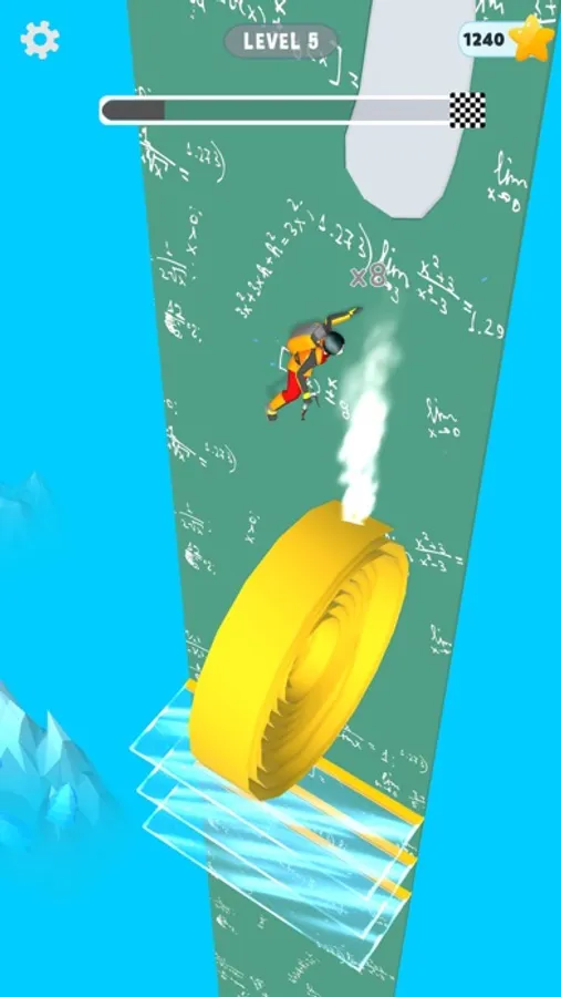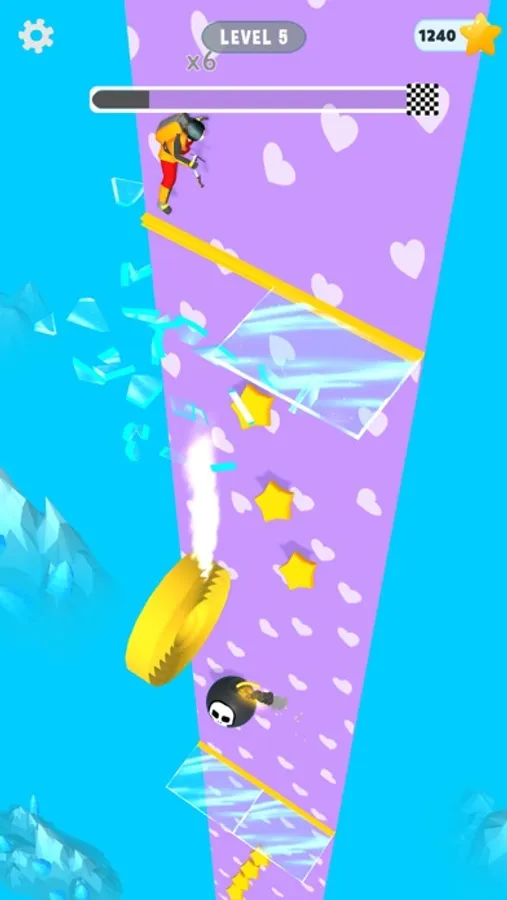 Stay away from blades and bombs to reach the bottom safely.