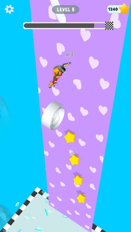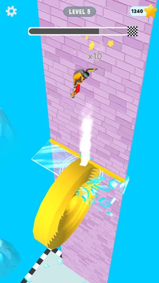 Tear the wallpaper and make a roll. Clear your way to the bottom. Break obstacles with your rolls and protect yourself. Small rolls can only shatter the glasses so use multiple rolls or a big roll to smash it right away.