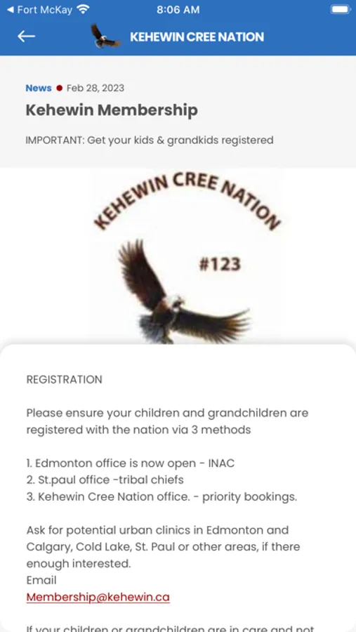 - View personalized feed supplied by the Band Office in a chronological order or by category: