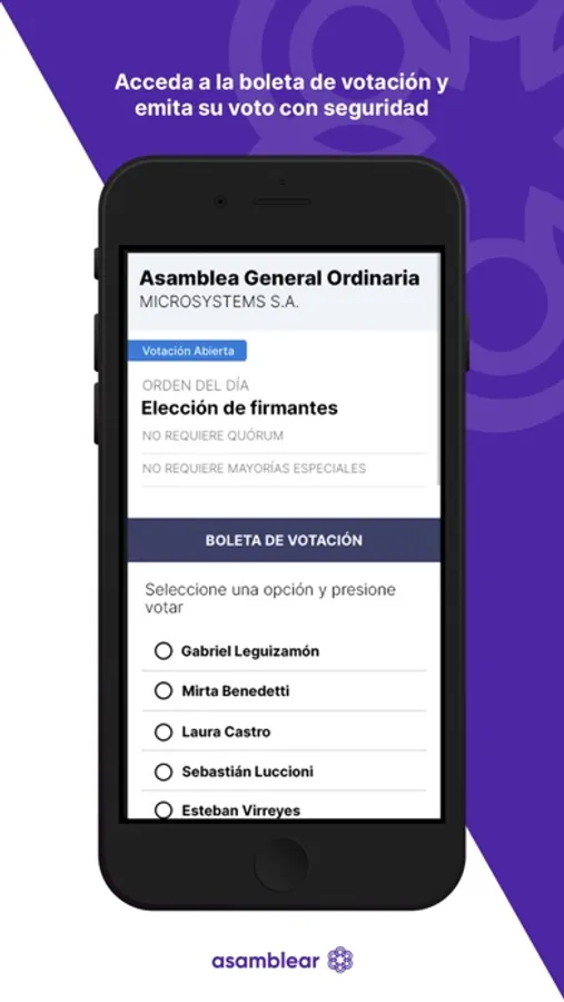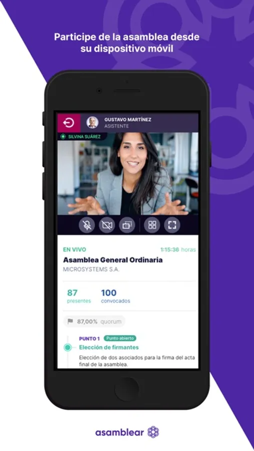 Plataforma que se encarga de facilitar la participación en asambleas virtuales, presenciales o mixtas, potenciando de esta manera la toma de decisiones con una solución tecnológica, inmersiva y segura.