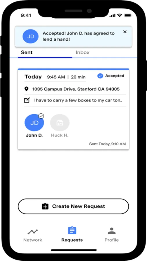 Disabilities often lead to a sense of guilt in asking for help on a daily basis. In order to eliminate this feeling of a burden from the lives of those who need assistance, meet SafetyNet, a help-request platform that leverages one's personal, trusted network to decentralize the asking process.