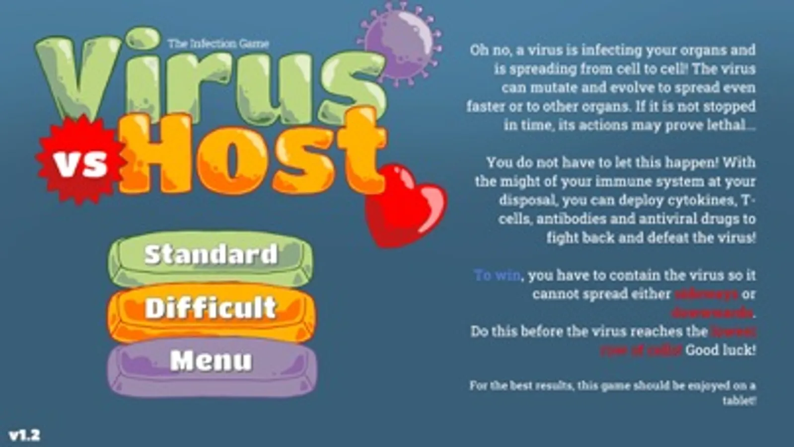 In this game, a virus has infected the host and will try to spread from cell to cell and across organs. The virus can mutate and evolve to spread even faster or to other organs. You do not have to let this happen! Use the immune system to fight back and defeat the virus!