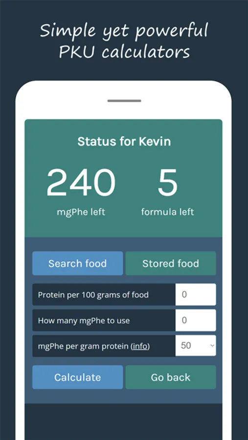 The inbuilt PKU calculators are extremely reliable and easy to use, and they work seamlessly together with your daily status. Even your mom would know how to use them :)