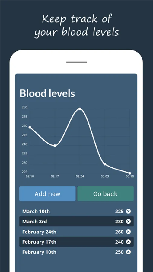 • Enjoy the logbook and register your blood levels