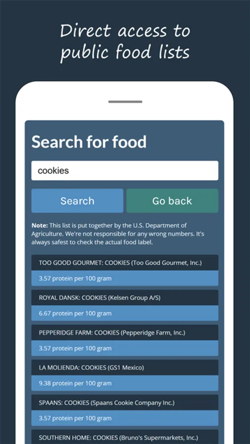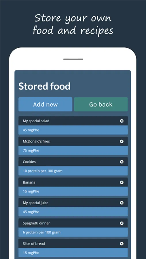 Feel free to create your very own list of food and recipes. The app even allows you to search among thousands of well-known food items. This works seamlessly together with the calculators.