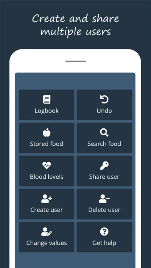 The app features a powerful logbook to record and track meals. If you want you can also enter your blood levels and the app will provide a clear overview of your status.