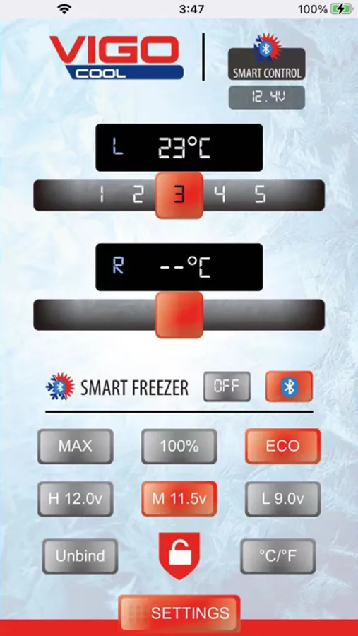 By connecting the smart car refrigerator through the APP, you can check the temperature of the refrigerator, voltage and other information, as well as temperature setting and turning the fridge off/on.