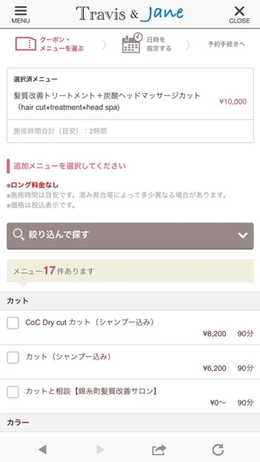 希望のメニュー・日時を指定して送信するだけで予約を依頼できます。