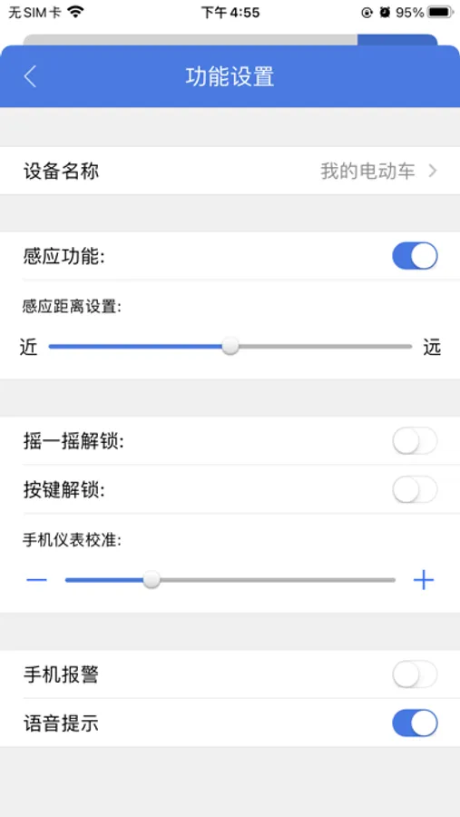 主页模块中,你可以了解到电动车的码数以及电量等信息,并且可以控制报警器。