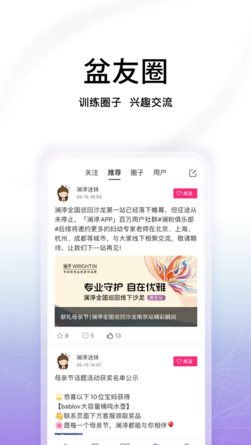 【盆友圈】与盆友们畅快交流产康经验,一起战胜懒癌,见证每一天的进步。