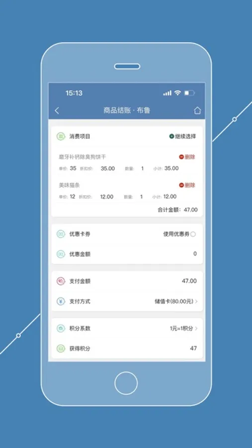 普通结账,快速结账,储值结账,接种疫苗、宠物寄养、计次结账,散客结账,自动积分,自动折扣...