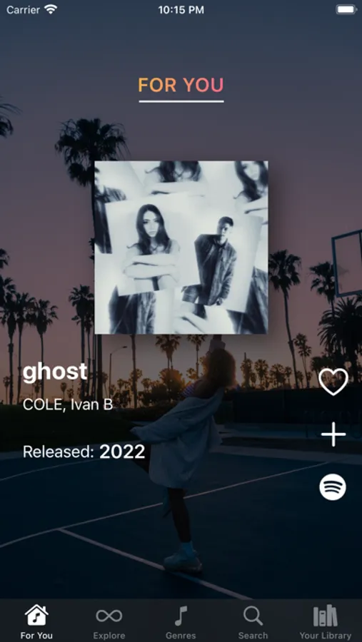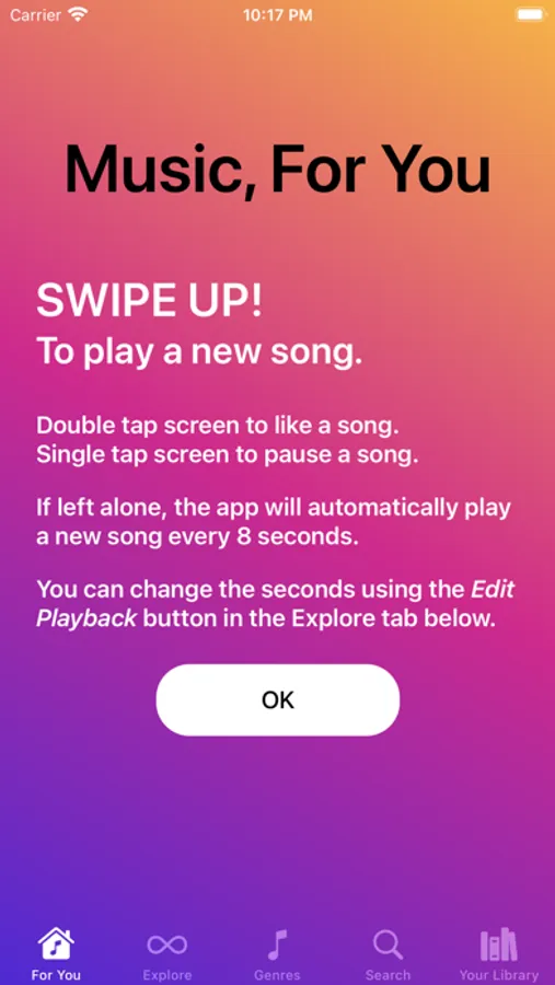- For You! Swipe up to play a new song or let the app automatically play a new song for you.
