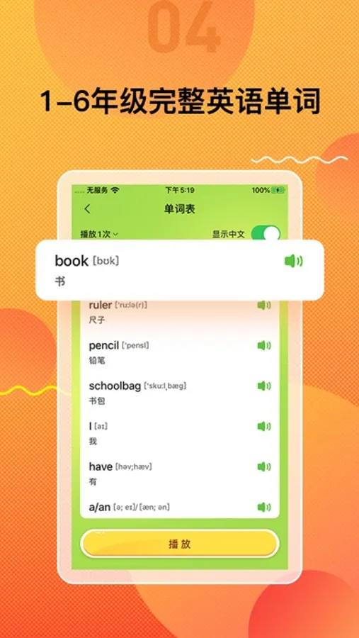 【全套1-6年级上下册】完全免费,无广告,方便实用的小学生学习单词软件