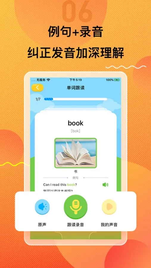 【单词跟读】录音对比,帮助学生纠正发音,另有图片和例句,更深刻理解记忆单词