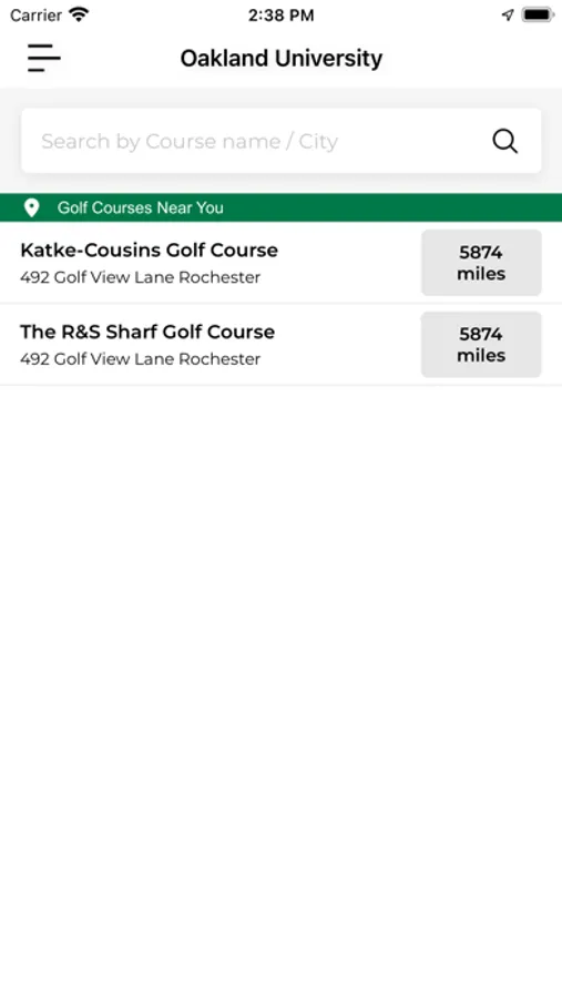 Oakland University gives you access to every golf course in the Oakland University portfolio. Enjoy access to an on course rangefinder, live scoring system, course information, weather updates, tee-time booking service, and messaging systems functions. Additionally, the Oakland University may be used to sign up for events, view your Membership portal, order food and beverage, and to receive course promotions at all Oakland University Golf Courses.