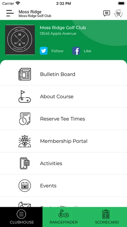 Moss Ridge Golf Club gives you access to an on-course rangefinder, live scoring system, course information, weather updates, tee-time booking service, and messaging systems functions. Additionally, the Moss Ridge Golf Club app may be used to sign up for events, view your membership portal, order food and beverage, and receive course promotions at Moss Ridge Golf Club.