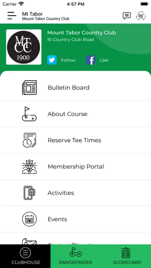 Mount Tabor Country Club gives you access to an on-course rangefinder, live scoring system, course information, weather updates, tee-time booking service, and messaging systems functions. Additionally, the Mount Tabor Country Club app may be used to sign up for events, view your membership portal, order food and beverage, and receive course promotions at Mount Tabor Country Club.