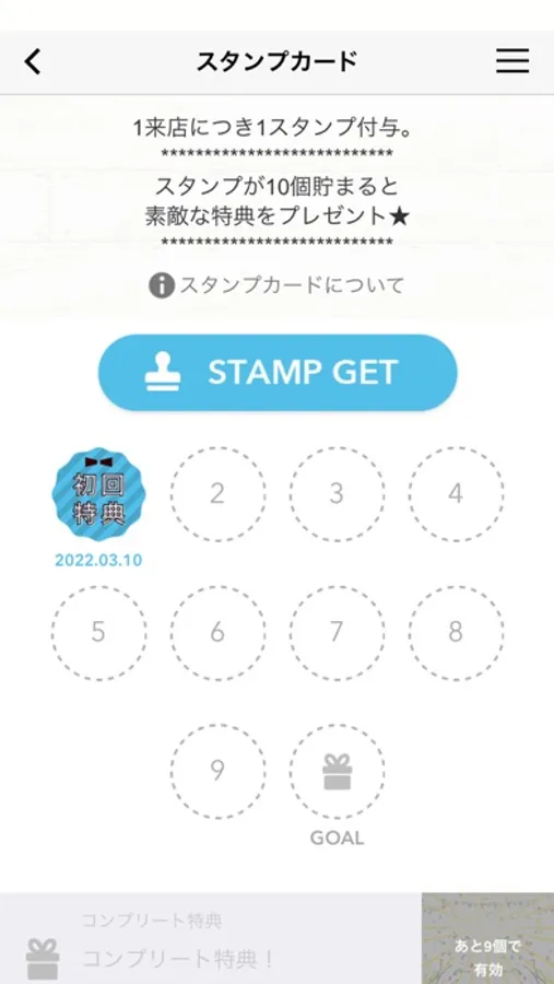 たくさん貯めていただくと次回使える特典をご用意しております。