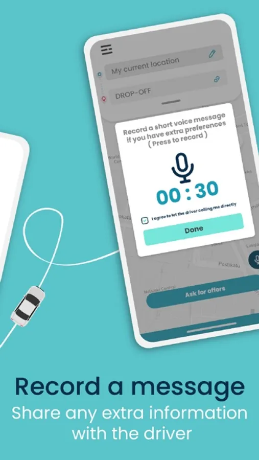It’s easy to request a ride, just insert your destination, receive drivers’ offers’, and explore the offers by several options: Driver’s rating, car type, and offered fares. With balance, you get to choose what’s best for you. Not only that you can also record a short message for any extra information with your ride request to make your life easier.