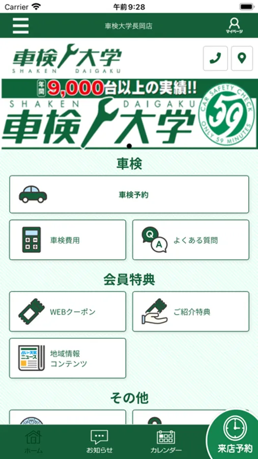 車検大学の公式アプリでは、お得な情報やクーポンの受け取り、車検・整備の