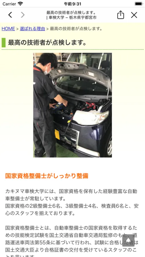 車検合格率等の高い水準をクリアした関東運輸局指定整備工場です。