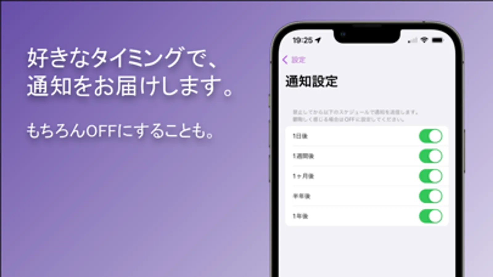 一定期間後に送信される通知はもちろん、ライトモードとダークモードの切り替えも、アプリ内で行うことができます。