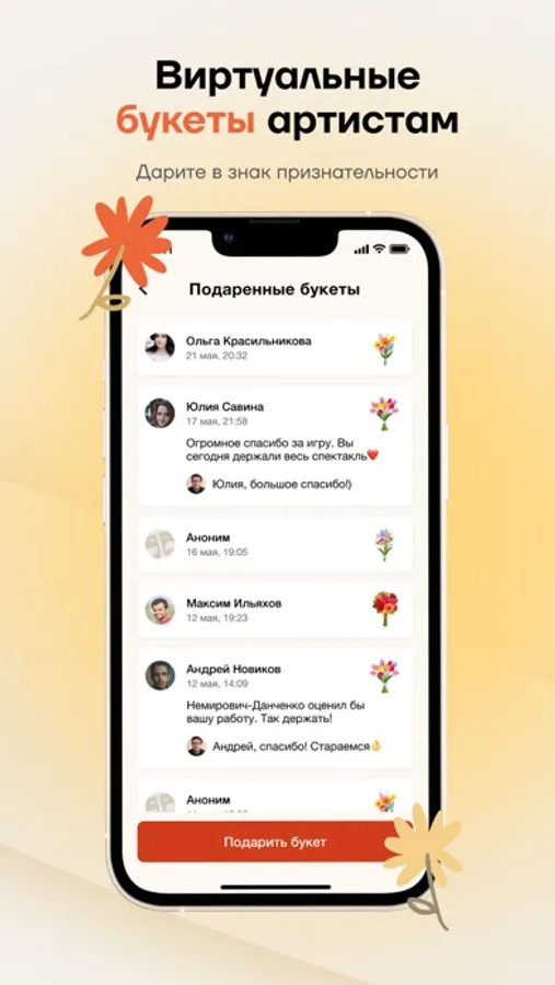 — Выражайте признательность артистам — дарите им красивые, неувядающие виртуальные букеты.