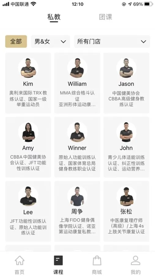课程:为会员提供专业课程信息、教练信息展示。会员可在App内预约团操课、私教课、游泳课等。