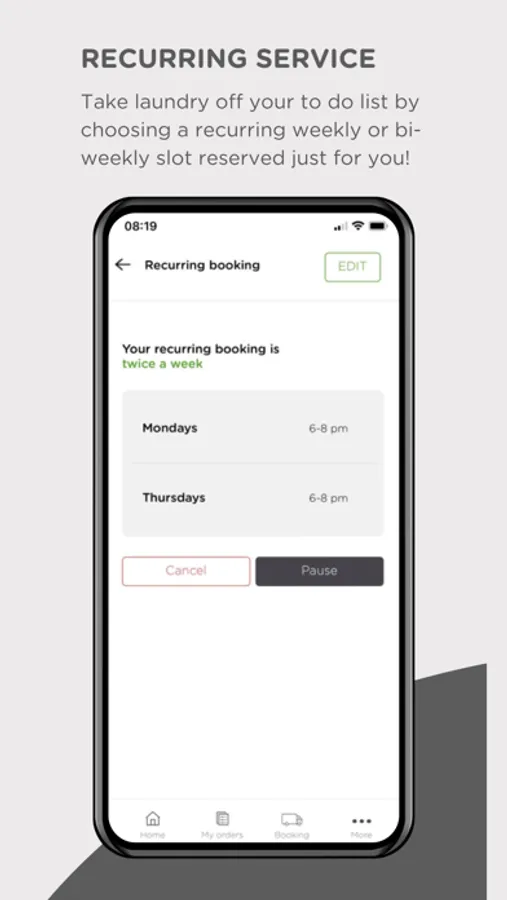 + Reserved recurring service available (once, twice or three times a week): set it up once on the app so you don’t have to think of laundry ever again. Pause or cancel anytime