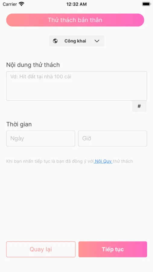 Xgage có 2 nền tảng là đặt Thử Thách Bản Thân và đặt Thử Thách Cho Người Khác, bạn có thể đặt thử thách free hoặc thử thách có phí.