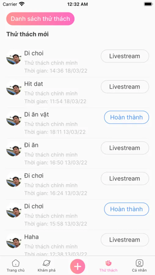 Người dùng chỉ có thể quay video livestream thử thách khi được chúng tôi phê duyệt và nút livestream chỉ xuất hiện ở 1 thời điểm nhất định ( thời gian ghi vào lúc đặt thử thách ) đó là cách chúng tôi tạo động lực cho người dùng hành động, vì nếu bạn đặt thử thách mà không thực hiện bạn sẽ mất quyền lợi.