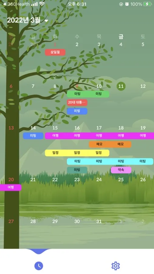 일정을 한눈에 볼 수 있도록 색상지정으로 통한 일정 관리!!