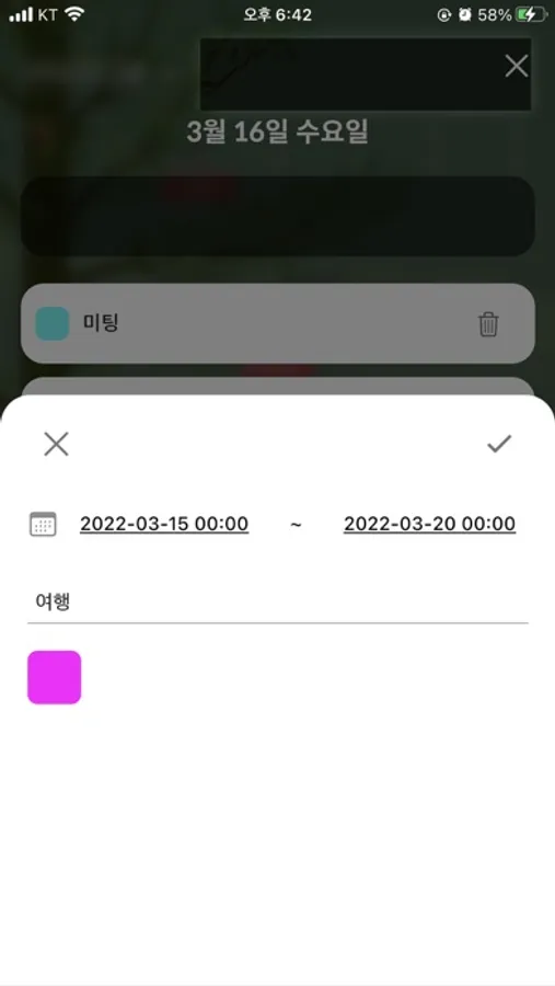 일정 등록시 원하는 색상으로 지정할 수 있습니다.