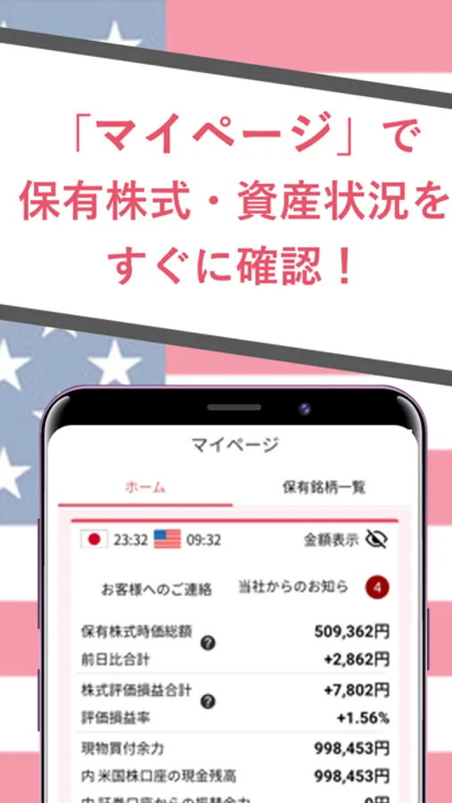 ※「松井証券 米国株アプリ」の全ての機能を利用いただくには、松井証券に米国株口座を開設していただく必要があります。